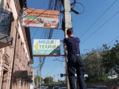 Постійно діючою робочою групою з організації проведення демонтажів тимчасових споруд, які влаштовані на земельних ділянках комунальної власності без документів, що посвідчують право користування землею, спільно з управлінням муніципальної інспекції демонтовано рекламні конструкції з електроопори.