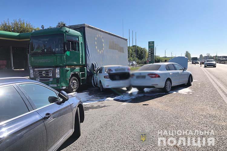 За попередніми даними, водій SKODA Superb, здійснюючи маневр розвороту ліворуч, зіткнувся із автомобілем TOYOTA Corola. Після удару одну із іномарок відкинуло і вона врізалася в припарковану на узбіччі вантажівку.