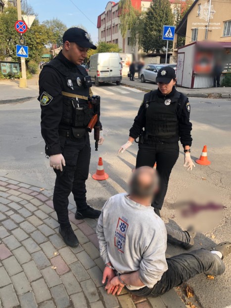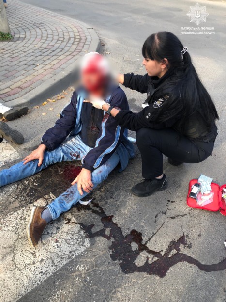 Інспектор Олександр Михайлик негайно затримав, ймовірного, правопорушника, а його колега Мар’яна Козюк оперативно надала першу допомогу потерпілому: зупинила кровотечу та викликала на місце карету швидкої.