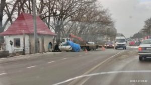 Місцеві кажуть, що зіткнення спричинила ожеледиця на дорозі. Внаслідок аварії постраждав один з поліцейських. Він, ймовірно, отримав перелом хребця.