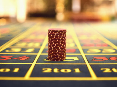 Roulette chips on a gaming table in a casino. Casino game concept.