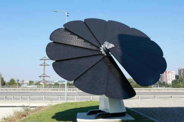 У Тернополі презентували сонячну панель Smartflower. Це перша в Україні сонячна станція, яку можна переміщати. Вона працює за принципом соняшника: переміщується за сонцем, щоб збирати якнайбільше сонячного світла.