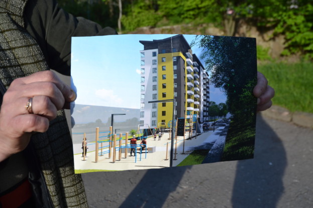 – Документи всі виготовлялися протягом року. З 2012-го було оголошено тендер для залучення інвестора. Його шукали декілька років. Зараз знайшли. Ми отримали відповідну документацію для того, щоб вести будівництво. Зробили колосальну роботу, працювали компетентні люди. Будинок (двопід’їзний, дев’ятиповерховий) буде розташований за 16 метрів від підпірної стінки, із наземним паркуванням. Заїзди будуть ті ж, що й зараз. Ніхто не чіпатиме зелених насаджень! Велися розрахунки згідно з усіма нормами! – розповіла юрист, що представляє інтереси будівельної фірми.