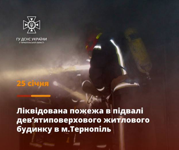 25 січня о 19:56 на номер екстреного виклику «101» надійшло повідомлення про пожежу, що виникла в підвалі дев’ятиповерхового багатоквартирного житлового будинку на вул. Київській, 8 в м. Тернопіль.