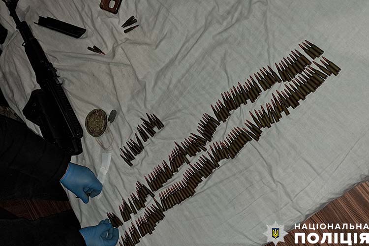 Під час санкціонованого обшуку за місцем проживання підозрюваних поліцейські вилучили близько 200 патронів, серед яких були й бронебійні, а також автомат Калашникова.