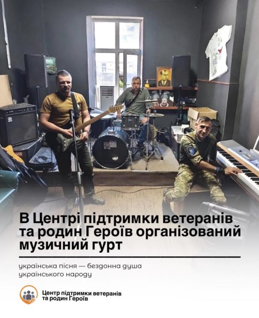 У Центрі підтримки ветеранів та родин Героїв у Тернополі з’явився унікальний музичний гурт, який об’єднав ветеранів російсько-української війни, які захоплюються музикою. До складу гурту увійшли п’ять захисників – музикантів: барабанщик, клавішник, бас-гітарист та двоє гітаристів.