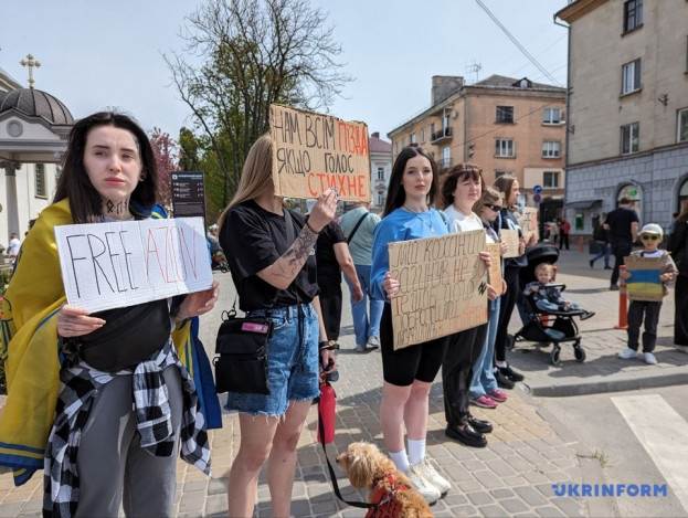 «Ми будемо виходити на акції протесту, допоки наших рідних не повернуть. Не дамо забути про них. У мене наречений у полоні і друзі», – розповіла співорганізаторка акції Наталя Дубиніна.