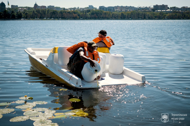Цьогоріч у місті продовжили реалізовувати програму з відновлення екосистеми Тернопільського ставу та інших міських водойм. Цими днями для очищення ставу, пригнічення розвитку синьо-зелених водоростей і збагачення води киснем у найбільшу міську водойму було внесено суспензію хлорели у кількості 10 тонн.