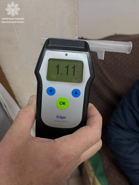 Огляд проводився у медичному закладі, прилад зафіксував 1,11 проміле алкоголю в крові водія, що суттєво перевищує допустиму законом норму.
