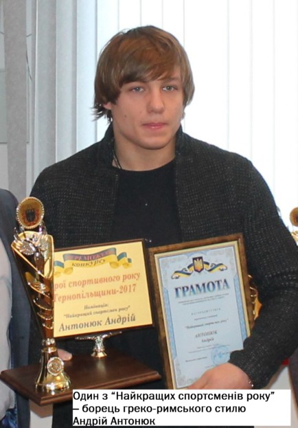 До трійки лауреатів номінації «Найкращий спортсмен року» увійшов і майстер спорту України міжнародного класу з греко-римської боротьби Андрій Антонюк. Вихованець ще одного «Героя спортивного року – 2017» Андрія Телебана став бронзовим призером чемпіонату світу серед молоді до 23 років і здобув медаль такої ж проби на чемпіонаті Європи серед молоді до 23 років.