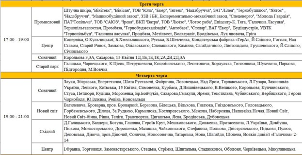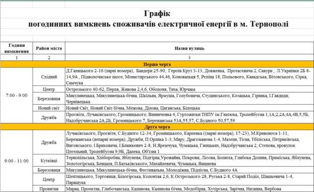 Також, найближчим часом буде оприлюднений консолідований Графік погодинних вимкнень споживачів електричної енергії всієї Тернопільської області.