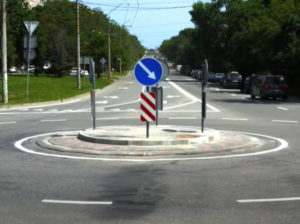 Довідка. Кругове перехрестя — це перехрестя, де транспортні засоби уповільнюються і починають круговий рух навколо центрального «острова» у напрямку проти годинникової стрілки на дорогах з правостороннім рухом або за годинниковою стрілкою на дорогах з лівостороннім рухом, до виїзду на одному з поворотів (відгалужень) з кругового перехрестя.