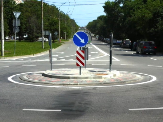 Відповідно до проєктної документації, на ділянці влаштовано дорожнє кільце з технічною полосою, центральний «острів» з пониженими бордюрами, а також встановлено дорожні знаки і нанесено розмітку згідно з новою схемою ОДР.