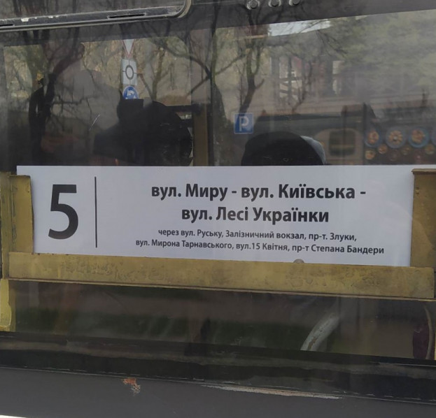 Такі трафарети встановлюють на тих тролейбусах, на яких відсутнє електронне табло. Наразі проведено заміну вказівників на маршрутах №№ 10, 7, 5, 2, 1.
