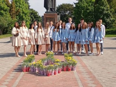 1 вересня учні 11-х класів Лановецького закладу загальної середньої освіти №1 імені Юрія Коваля принесли на центральну площу міста 80 хризантем і вистроїли їх у формі Тризуба.