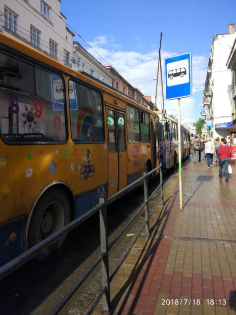 Внаслідок зіткнення на лобовому склі тролейбуса №11 утворилася тріщина, а рух вулицею Руська в цьому місці утруднився. Транспорт рухається дуже помалу, адже вулиця вузька, а об’їхати тролейбуси,яких зібралося вже кілька одини