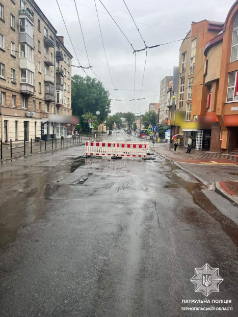У Тернополі на вулиці Князя Василя Костянтина Острозького, через сильну зливу пошкоджено дорожнє покриття – утворилося провалля.