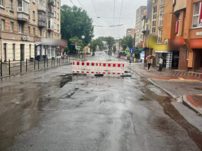 У Тернополі на вулиці Князя Василя Костянтина Острозького, через сильну зливу пошкоджено дорожнє покриття – утворилося провалля.