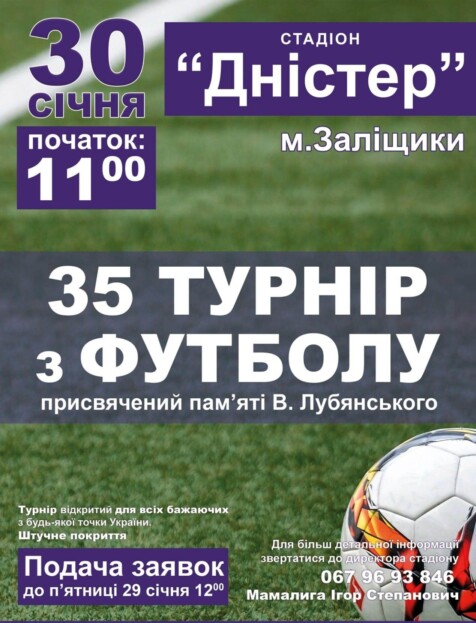 30 січня у Заліщиках на спортивному майданчику зі штучним покриттям відбудеться зимовий турнір з міні-футболу пам’яті загиблого в Афганістані Валерія Луб’янського.