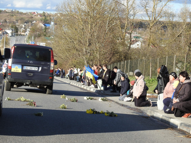 Захисник України Андрій Дзюма віддав своє життя за Перемогу над московським окупантом. Осінніми квітами сотні людей встелили дорогу Герою, що повернувся на щиті. На колінах жителі громади зустрічали і проводжали тіло Захисника до рідного дому, де його зустріла згорьована мама.