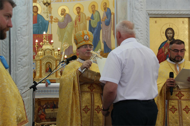 Після Богослужіння о. Дмитро від імені архиєпископа і митрополита Тернопільсько-Зборівського Василія Семенюка привітав всіх учасників паломництва. «Робота працівників енергетичної сфери завжди була складною та важливою. У воєнний час ви працюєте цілодобово, попри складні погодні умови, попри обстріли, працюєте, щоб українці вдома мали світло та тепло. Ви є серед тих, хто своєю увагою та сумлінною працею забезпечує майбутню перемогу України», – звернувся до паломників священник. Також отець-митрат вручив митрополичі грамоти в знак вдячності за звитягу та жертовну працю в. о. голови правління – генеральному директору ВАТ «Тернопільобленерго» Ігорю Юхімцю, голові профкому ВАТ «Тернопільобленерго» Лілії Пензей та очільникам районних відділів.