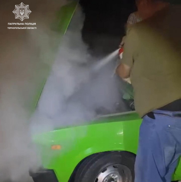 У Зборові патрульні вчасно загасили автомобіль, який зайнявся під час руху