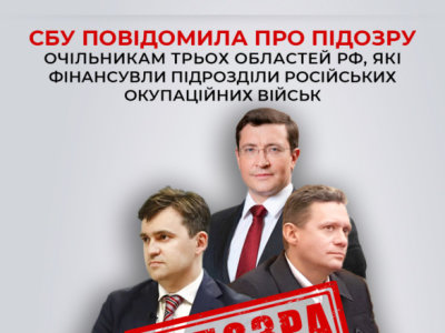 Служба безпеки повідомила про підозру очільникам трьох областей рф, які здійснювали фінансове та матеріальне забезпечення підрозділів російських окупаційних військ на тимчасово захоплених ворогом територіях України.