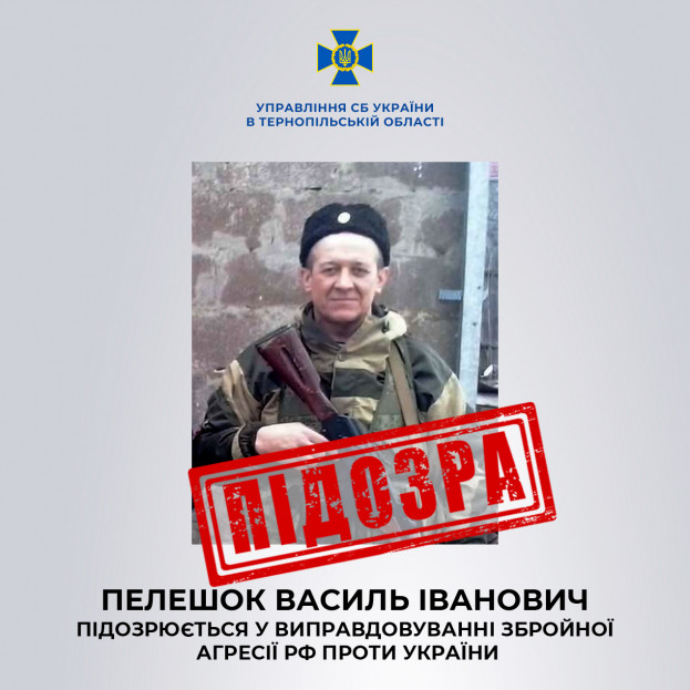 За процесуального керівництва прокурорів Тернопільської обласної прокуратури повідомлено про підозру уродженцю Тернопільщини, зареєстрованому на Луганщині, що проживає у Криму, який виправдовував збройну агресію РФ проти України та публікував агітаційні матеріали на підтримку військовослужбовців країни-агресора (ч. 3 ст. 436-2 КК України).