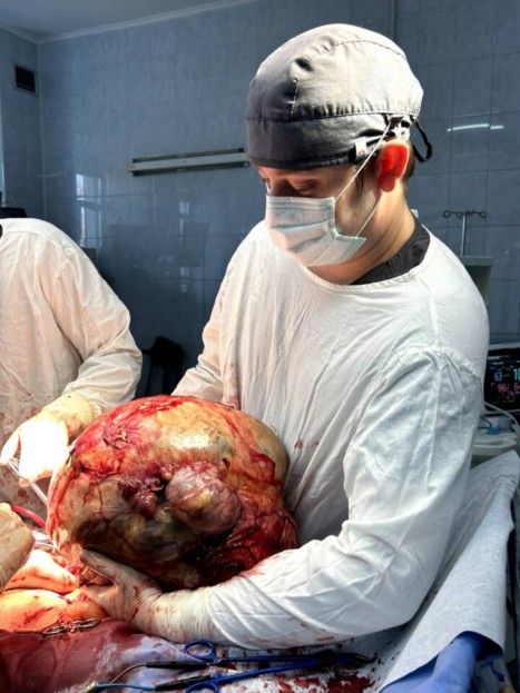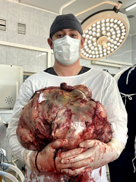 Згідно рішення мультидисциплінарної комісіїї в КНП «ПКОЦ ІФ ОР» пацієнтці було рекомендовано хірургічне лікування. Пацієнтка була успішно прооперована. Вага видаленої пухлини 17 кг.