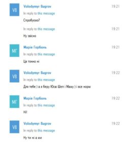 Одна із студенток, Марія Горбань, опублікувала фото переписки, на якій видно, що ректор схиляє до сексу дівчину та її маму. Але студентка сама й не проти.