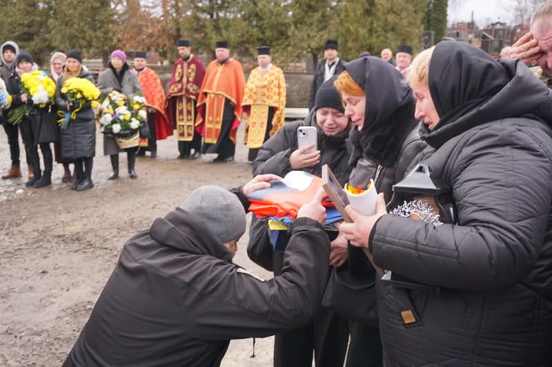 Провести воїна в останню дорогу прийшли його рідні, бойові побратими та члени організації Українська Народна Самооборона, куди входив Роман, а також друзі.
