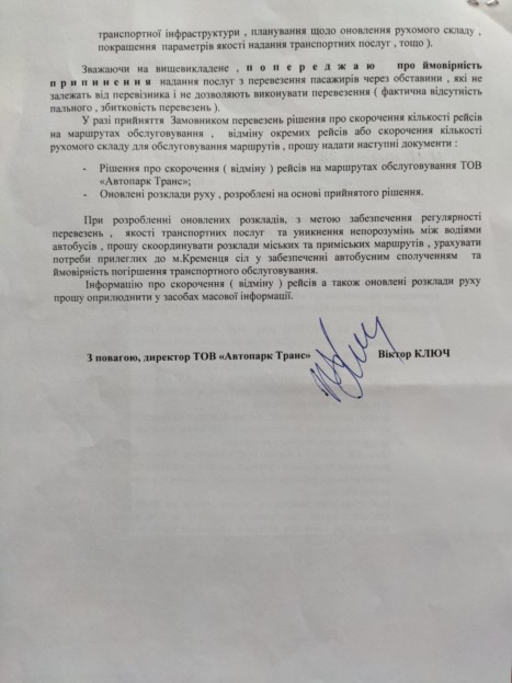 Кременецькою міською радою також отримано звернення від місцевих пасажирських перевізників, у якому проінформовано, що мінімальна вартість перевезення одного пасажира на міських перевезеннях при теперішній ціні пального складає 15 гривень. Ця вартість не передбачає отримання прибутку, а дозволяє лише перевозити пасажирів без збитків для перевізників.