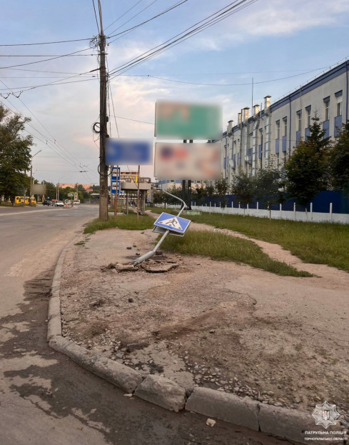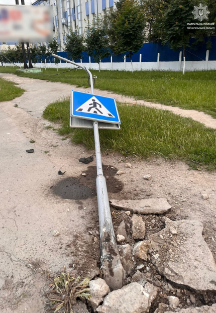 Збив дорожній знак і втік: у Тернополі патрульна поліція розшукує винуватця ДТП (+фото)