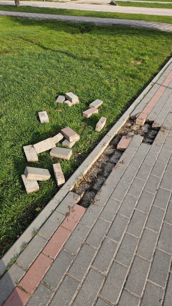 У Шумську невідомі безжально зруйнували майно громади — те, що належить кожному з місцевих мешканців. Пошкоджено бруківку навпроти навчальних корпусів ДНЗ «Шумське ПТУ» та школи мистецтв.