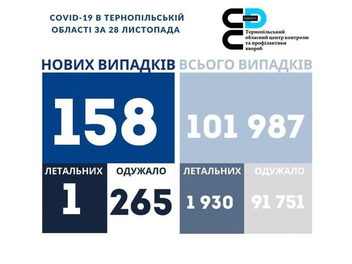 За весь час пандемії в Тернопільській області