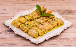 Також віддайте перевагу овочевим голубцям. Їхнє приготування займе всього 25 хвилин. Інгредієнти: капуста білокачанна (середній розмір); рис довгозернистий – 100-120 грам (0,5-0,7 склянки); томати – 1-2 штуки; цибуля ріпчаста – 1-2 штуки; морква (середня) – 1-2 штуки; гриби (будь-які) – 100-200 грам; часник – 2 зубчики; томатна паста (наприклад «Помідорка») – 4-6 ст. ложок; рослинна олія – 30 грам; перець мелений, чорний – за смаком; вода (звичайна) – 0,7-0,8 літра; зелень (кріп, петрушка) – за смаком; трохи окропу (для ошпарювання помідорів); сіль – за смаком. Приготування дуже просте. Миєму капусту і розбираємо на листя, відварюємо його. Варимо для начинки рис та беремося до грибів, помідори нарізаємо так, як вам подобається. Ріжемо часник та зелень, за ними – моркву та цибулю, кладемо їх на сковорідку, додаючи трохи олії. Коли цибуля з морквою приготувалися, викладаємо їх на окрему тарілку, а в ту саму пательню кладемо гриби. Коли вони підтушкувалися, викладаємо їх у велику миску, туди ж кладемо варений рис, помідори, часник та зелень. Начинкою фаршируємо капустяне листя. Обсмажуємо голубці на невеликому вогні разом з олією протягом 5 хвилин. Потім поміщаємо їх у велику каструлю, заливаємо томатним соком, який можна розвести водою, і ставимо на вогонь (можна в духовку) на 30 хвилин.