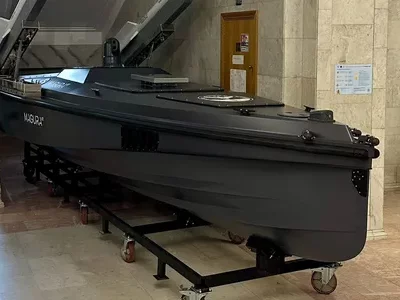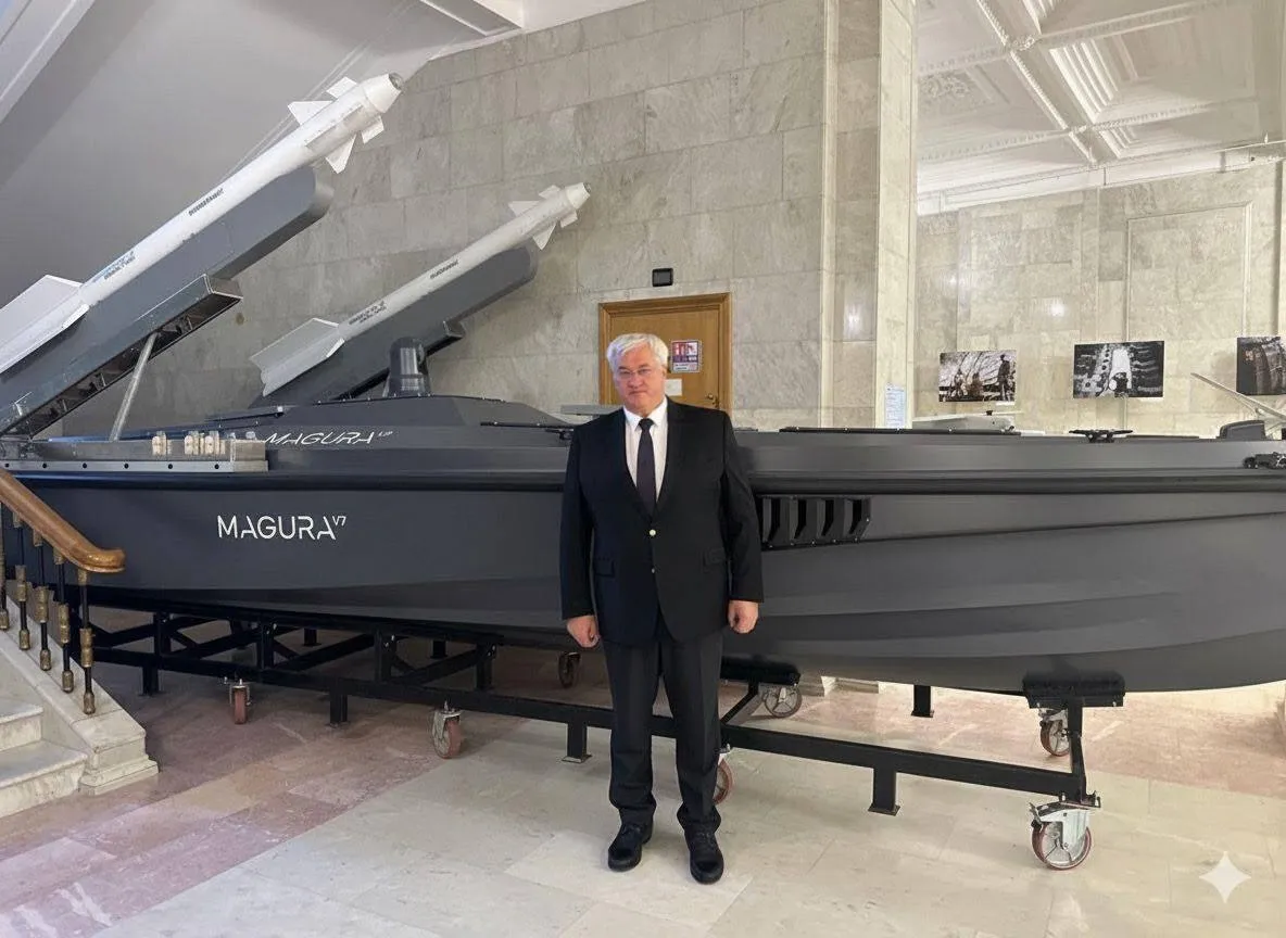 Андрій Сибіга додав, що надводний безпілотний човен Magura V7 не лише знищив третину кораблів Чорноморського флоту РФ, а й першим у світі збив бойовий літак Су-30 з моря, саме у представленій модифікації.