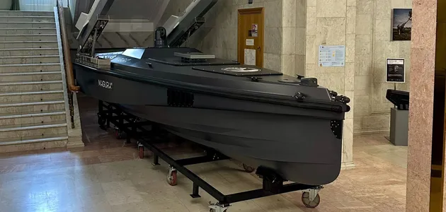 У будівлі Міністерства закордонних справ України встановили макет морського дрона Magura V7, який першим у світі збив бойовий літак Су-30 з моря. Виставка новітніх зразків озброєння покликана популяризувати українську зброю та демонструвати оборонно-промисловий потенціал України з метою залучення інвестицій.