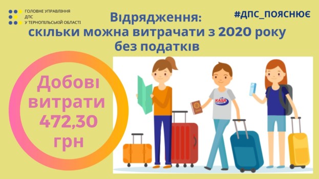 Відтак неоподатковуваний розмір добових у межах України становить з 01.01.2020-го 472,30 грн. на день.