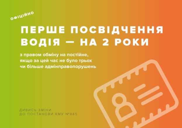 Відтепер, перше посвідчення водія у сервісних центрах МВС видаватиметься на 2 роки з правом обміну на постійне у разі, якщо протягом двох років з дня його видачі не було 3 і більше адміністративних правопорушень у сфері забезпечення безпеки дорожнього руху. Якщо таких порушень не було – громадянин обмінює на постійне посвідчення водія.
