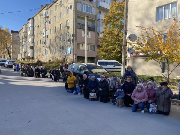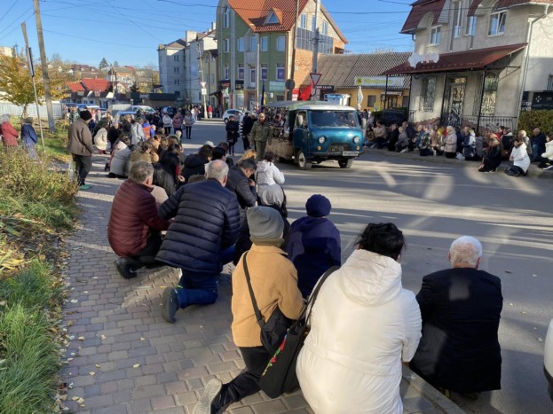 Кортеж із тілом Героя зустріли навколішки. Люди віддали шану покійному та помолилися за упокій його душі.