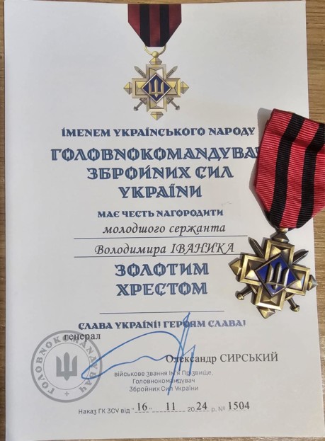 – З перших днів повномасштабного вторгнення він добровольцем долучився до лав Збройних Сил України. Його рішення захищати рідну землю — це прояв глибокого патріотизму й відданості. Він служить у складі 63-ї бригади в підрозділі реактивної артилерійської батареї. Брав участь у запеклих боях на Запорізькому, Донецькому, Херсонському та інших напрямках. За відвагу та безмежну самопожертву Володимира Іваника відзначено почесною нагородою — “Золотим хрестом” від Головнокомандувач Збройних Сил України. Ця нагорода — визнання його сміливості й незламного духу, – йдеться в повідомленні міського голови Підгайців Ігоря Мерени.