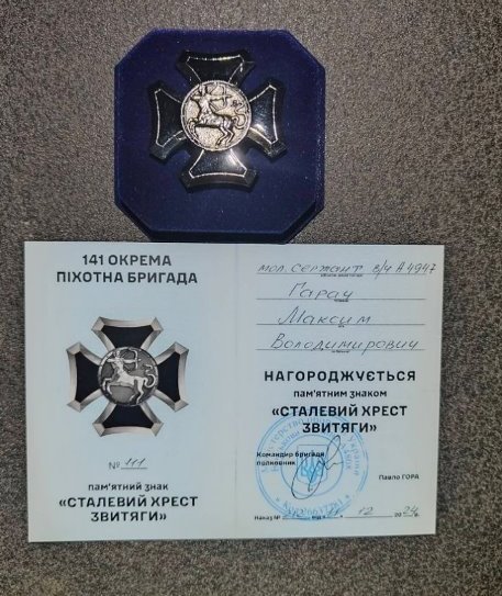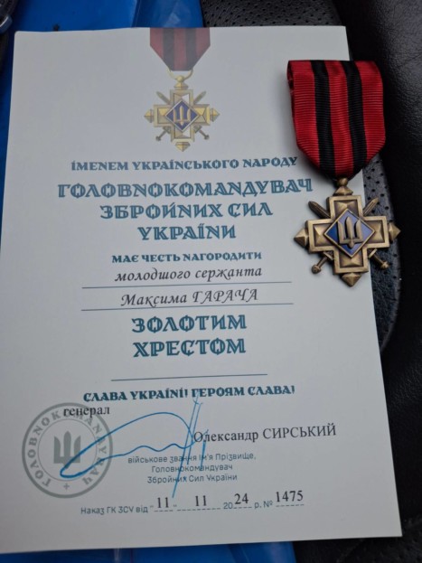 – І воює він самовіддано і професійно. Тож не дивно, що молодший сержант Максим Гарач наприкінці 2024 року отримав одразу дві почесні нагороди: «Сталевий хрест звитяги» від командира бригади і «Золотий хрест» від головнокомандувача Збройних Сил України Олександра Сирського. Щиро дякуємо Тобі, Максиме, за те, що захищаєш нас, захищаєш Україну!, – йдеться в повідомленні Байковецької сільської ради.