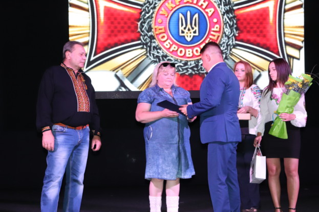 Стоячи, уся зала дякувала тим, хто першим став на захист нашої держави. Представники обласної та міської влади, волонтери з різних міст України, учасники бойових дій вручали нагороди 21 добровольцю Тернопілля. П’ятьох із них орденом «Лицарський хрест» вшанували посмертно – відзнаки отримували батьки, дружини, родини.