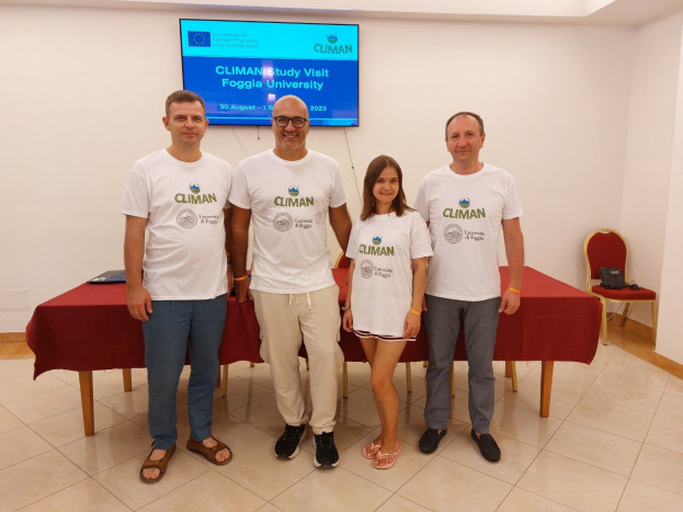 У межах реалізації проєкту 619119-EPP-1-2020-1-NL-EPPKA2-CBHE-JP «Синергія освітніх, наукових, управлінських та промислових компонентів для управління кліматом та запобігання зміні клімату» / CLIMAN (Програма Еразмус+, Інструмент сусідства, розвитку і міжнародної співпраці, напрям КА2: Розвиток потенціалу вищої освіти) у період з 30 серпня по 1 вересня 2023 року відбувся візит до Університету Фоджа (Італія) представників Західноукраїнського національного університету: координаторки проєкту, директорки навчально-наукового центру інноваційного розвитку та тренінгів навчально-наукового інституту інноватики, природокористування та інфраструктури Олени Борисяк; директора навчально-наукового інституту інноватики, природокористування та інфраструктури Василя Брича, завідувача кафедри агробіотехнологій Антіна Шувара.