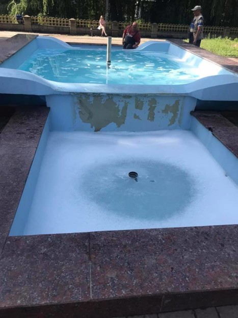 Нещодавно бучацькі комунальники очистили та увімкнули фонтан, а вже на наступний день невідомі хулігани вирішили пожартувати, додавши до води миючого засобу.