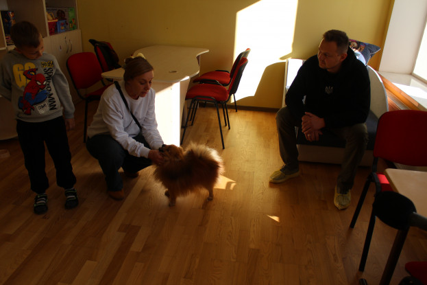 Засновник «Трухи» відвідав у Центрі кімнати психолога, реабілітолога, логопеда, терапевта, де особисто побачив, як проходять заняття з дітьми. Зокрема, каніс-терапевт Ірина Солан-Осьмак ознайомила гостя з каністепапією, тобто методом позитивного психосоціального і фізіореабілітаційного впливу на людей, які цього потребують, через спеціально керованих і навчених собак. Такою собакою у реабілітаційному центрі є «Річард». За словами пані Ірини, зв’язок з собакою є ефективним відволіканням для людей, які страждають від психічних розладів, депресії або тих, хто просто відчуває себе самотнім.