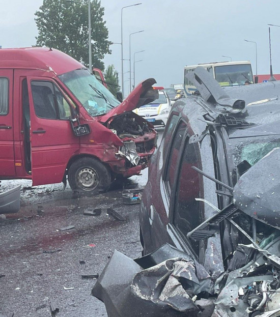 За попередніми даними, водій автомобіля “Mercedes-Benz Sprinter” не впорався з керуванням, виїхав на смугу зустрічного руху та зіткнувся з автівкою “Renault Duster”. У кросовері перебувала сім’ я: двоє дорослих та троє неповнолітніх дітей.