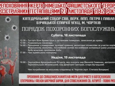 У селі Ягільниця Чортківського району знайшли масове захоронення українських патріотів, в’язнів чортківської тюрми, яких 27 листопада 1942 року розстріляли німецькі окупанти. Пошуки місця розстрілу тривали багато років. Ідентифікувати вдалося 56 осіб. І ось через 75 років їх поховають з усіма почестями та за християнським звичаєм.