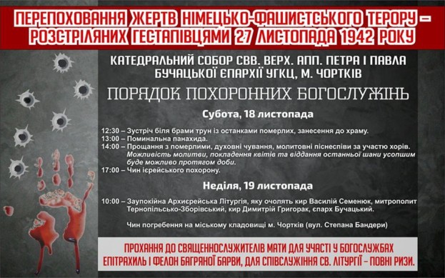 Чин поховання відбудеться 18-19 листопада 2017 року. Першого дня о 12 год. 30 хв. труни доставлять до катедрального собору Петра і Павла у м. Чорткові, де їх зустрічатимуть духовенство, родичі загиблих і миряни. Тоді ж відбудеться панахида. У соборі вони перебуватимуть протягом доби.